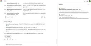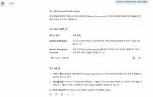 실제로 “제미나이 엔터프라이즈 에디션 종류”를 질문했을 때, 에이전트는 연결된 내부 문서를 실시간으로 분석하여 정보를 체계적으로 정리합니다.