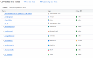 관리자는 ‘Connected data stores’ 설정을 통해 기업이 사용하는 다양한 플랫폼을 에이전트와 즉시 연동할 수 있습니다.