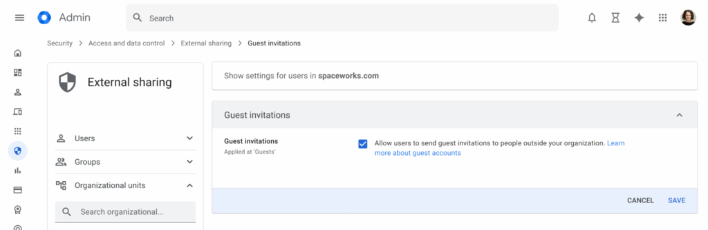 조직은 게스트 계정 사용자와 협업할 때 자신의 Workspace 도메인 내에서 생성되고 공유된 모든 데이터에 대한 전체 소유권을 유지합니다. 또한, 게스트 계정을 가진 외부 사용자는 Google 드라이브에서 새 파일을 생성하거나 소유할 수 없으며, 기존 파일에 초대되어 협업하는 것만 가능합니다.